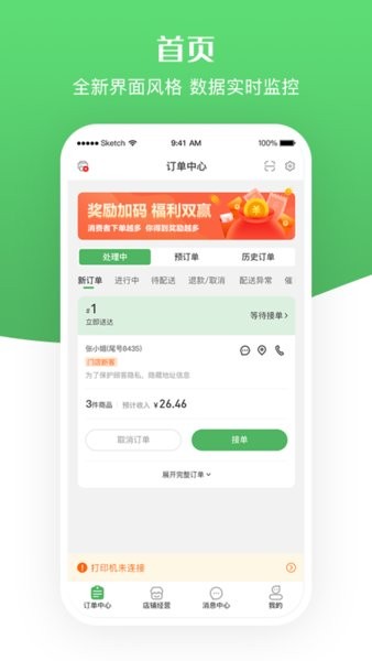 可以接收訂單、商品管理、會員管理、賬戶結算!
