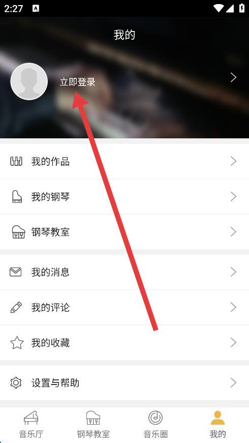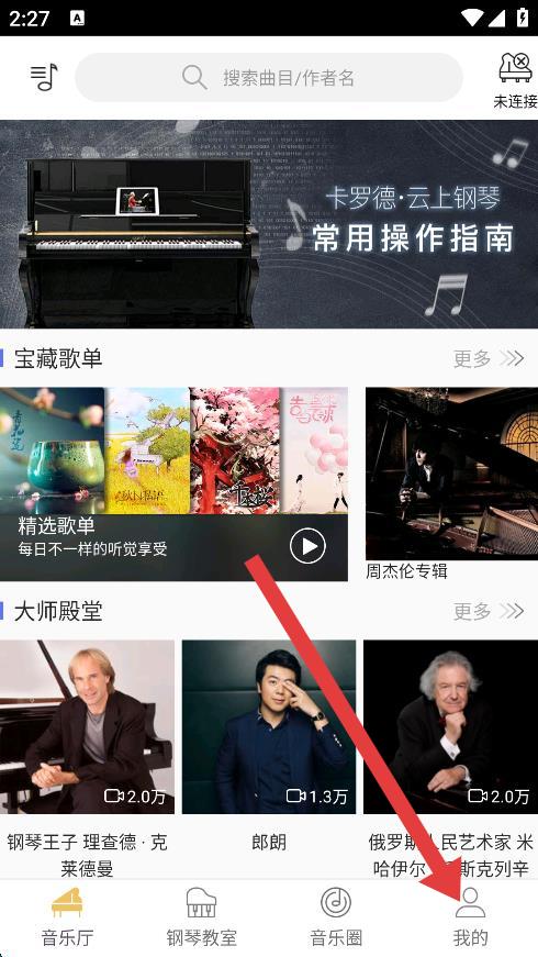 1、打開(kāi)云上鋼琴,點(diǎn)擊底部導(dǎo)航欄中的我的選項(xiàng)。