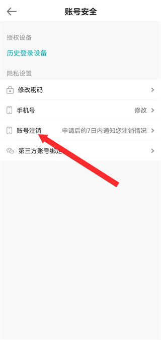 2、在賬號(hào)安全設(shè)置頁(yè)面,點(diǎn)擊賬號(hào)注銷(xiāo),進(jìn)入注銷(xiāo)信息填寫(xiě)頁(yè)面。