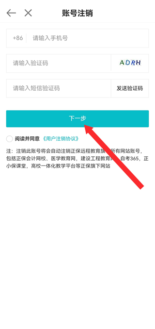 3、在信息填寫(xiě)頁(yè)面,輸入信息后點(diǎn)擊下一步,進(jìn)入注銷(xiāo)確認(rèn)頁(yè)面。