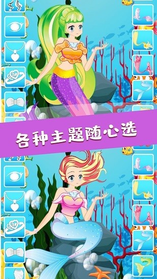 深海里住著一位美麗的美人魚公主,它是你要裝扮的對(duì)象,努力的讓她自信起來。