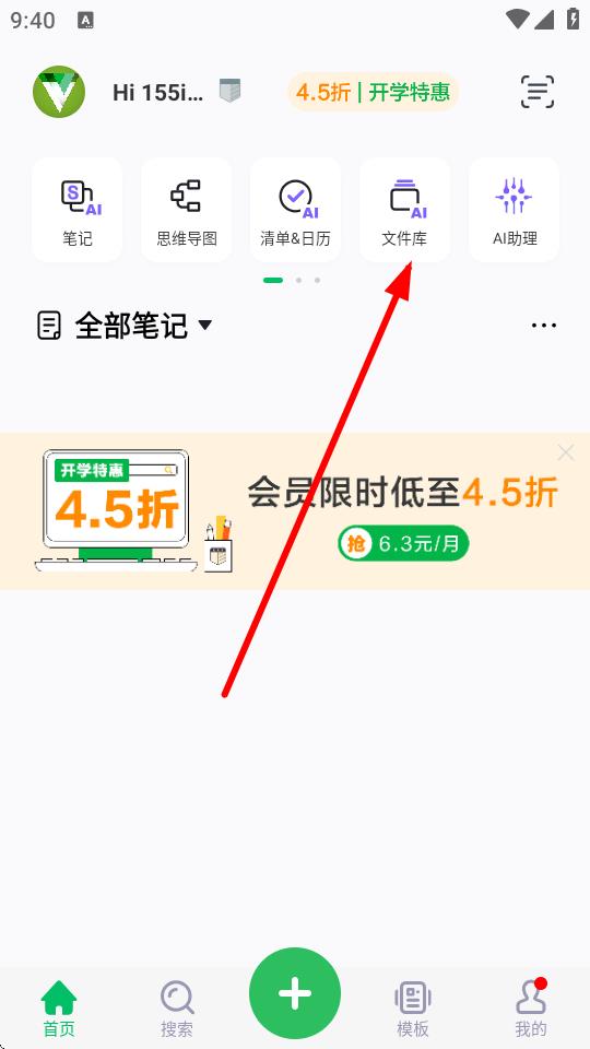 2、在首頁(yè)界面中點(diǎn)擊文件庫(kù)選項(xiàng),進(jìn)入文件庫(kù)頁(yè)面。