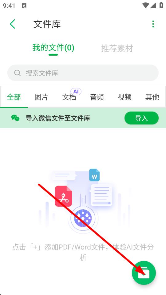 3、在文件庫(kù)頁(yè)面,點(diǎn)擊右下角的綠色+號(hào)按鈕。