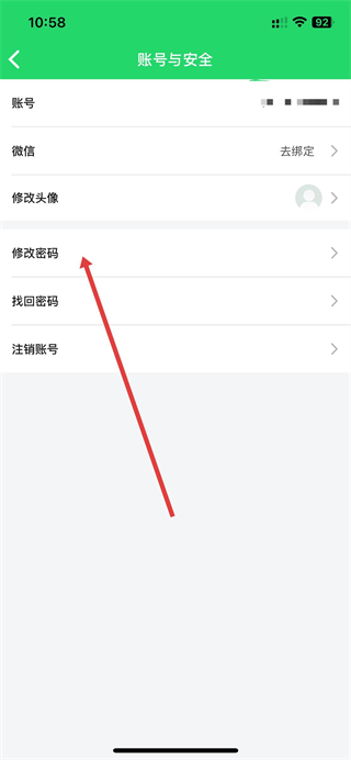 2、在賬號與安全頁面,點擊修改密碼選項。