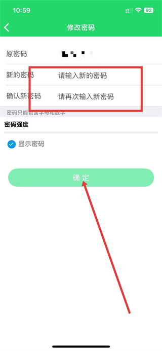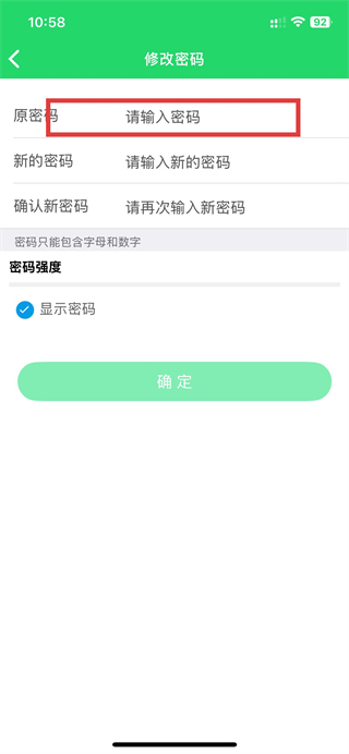 3、在修改密碼頁面,在輸入框中輸入原密碼。