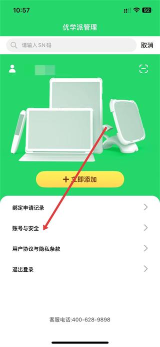 1、打開優(yōu)學(xué)派app,點擊賬號與安全選項。