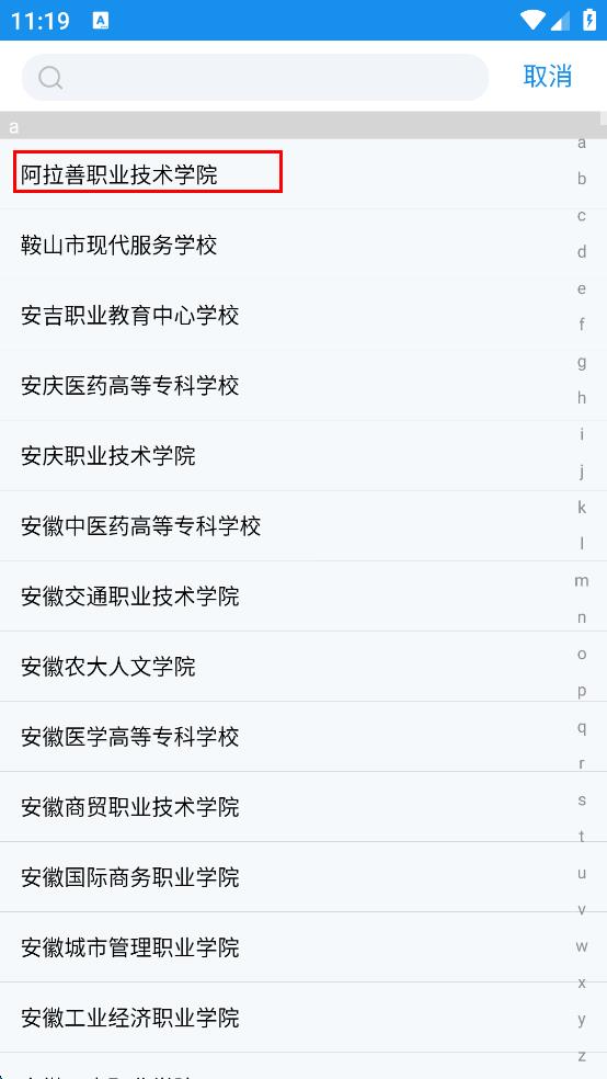 2、在學(xué)校選擇頁面,選擇所在學(xué)校,進入實習(xí)管理信息化平臺登錄頁面。