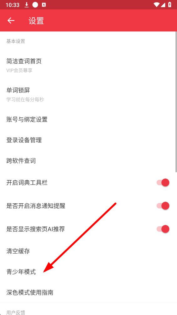 3、在設(shè)置界面中,在頁面下方找到青少年模式選項(xiàng),點(diǎn)擊進(jìn)入。
