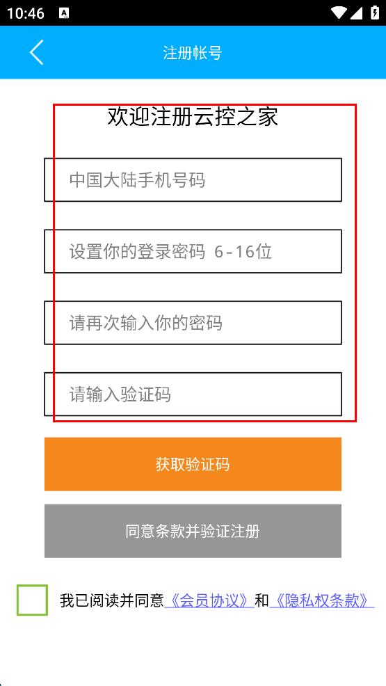 1、打開云控之家App,出現(xiàn)提示彈窗,閱讀相關(guān)文件后點(diǎn)擊同意按鈕。