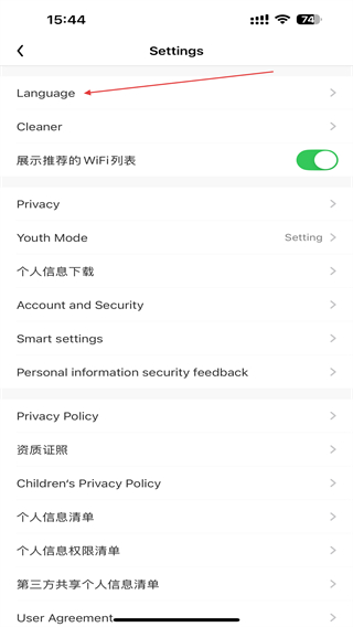 2、進入到設(shè)置的界面內(nèi),點擊Language的功能按鈕。