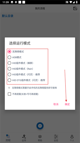 2、彈出選擇運(yùn)行模式窗口,在窗口中選擇合適的運(yùn)行模式后點擊確定按鈕。
