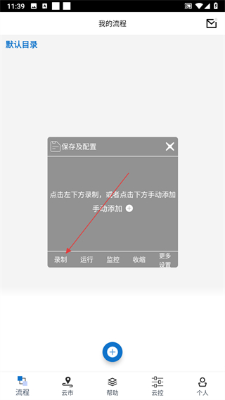3、確定運(yùn)行模式后,界面會彈出浮窗,在浮窗中點擊左下方的錄制按鈕。