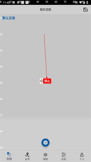 1、打開觸控精靈應(yīng)用,進(jìn)入我的流程界面,點擊界面底部的藍(lán)色加號按鈕。