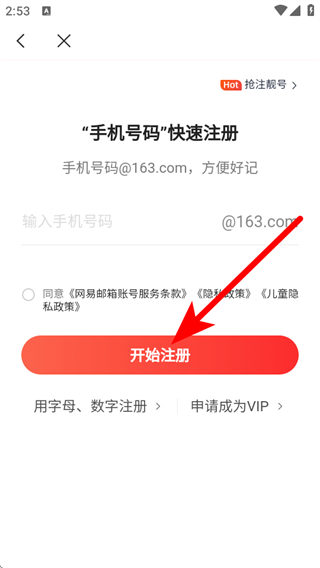 2、在郵箱類型選擇框中,點(diǎn)擊網(wǎng)易免費(fèi)郵箱,進(jìn)入手機(jī)號(hào)注冊(cè)頁面。