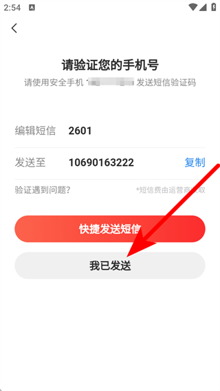 4、按提示發(fā)送驗(yàn)證短信后,點(diǎn)擊我已發(fā)送,完成手機(jī)號(hào)驗(yàn)證。