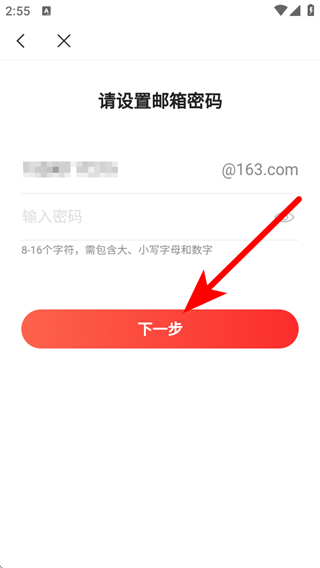 5、設(shè)置郵箱密碼后,點(diǎn)擊下一步按鈕,完成網(wǎng)易郵箱注冊(cè)操作。