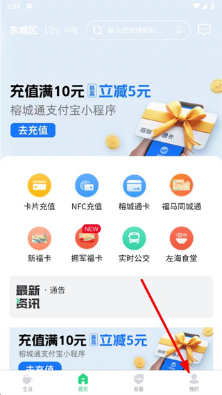 1、打開榕城通app,點(diǎn)擊底部導(dǎo)航欄中的我的選項(xiàng),進(jìn)入個(gè)人相關(guān)頁(yè)面。