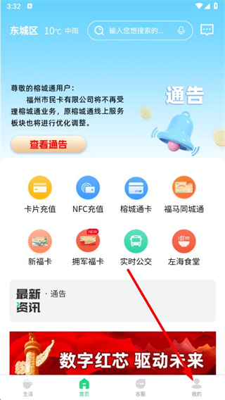 1、打開榕城通app,在首頁下方點(diǎn)擊我的,進(jìn)入個(gè)人相關(guān)頁面。