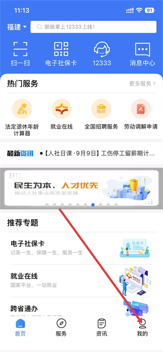 1、打開掌上12333,點擊底部導(dǎo)航欄最右側(cè)我的。