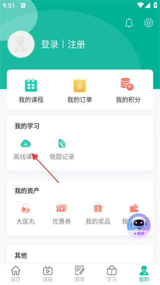 3、在我的頁(yè)面中,點(diǎn)擊離線課程選項(xiàng)。