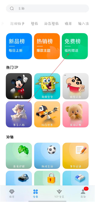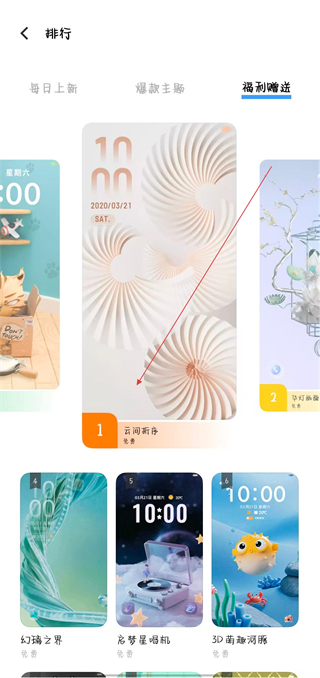 2、在分類頁面中,找到免費(fèi)榜并點(diǎn)擊,進(jìn)入免費(fèi)主題的排行頁面。