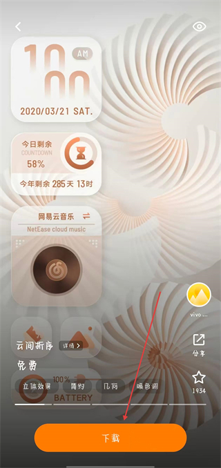 4、在主題詳情頁面,點(diǎn)擊下載按鈕,待下載完成后,即可成功使用該免費(fèi)主題。