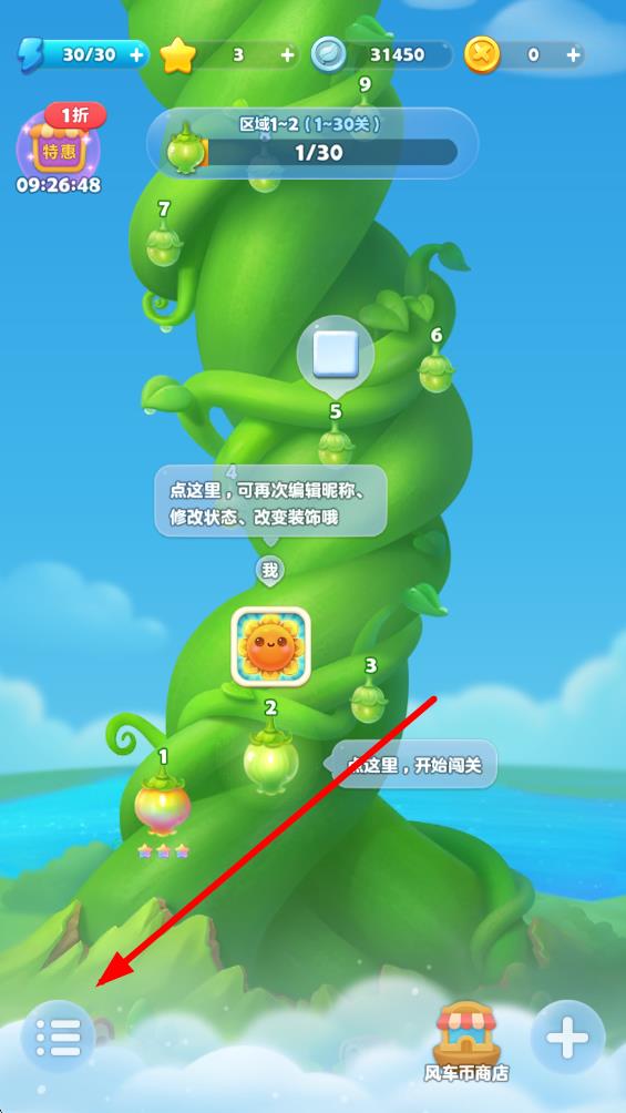 1、打開開心消消樂游戲,點擊游戲界面左下角菜單圖標。