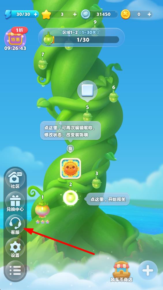 2、在彈出的側邊欄中,找到并點擊客服選項。