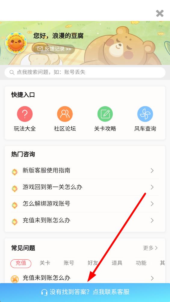 3、進入客服頁面后,下拉找到并點擊底部的聯(lián)系客服的按鈕。