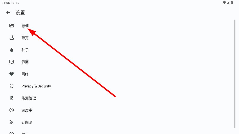 3、在設(shè)置頁面里,點擊存儲選項進(jìn)入存儲設(shè)置界面。
