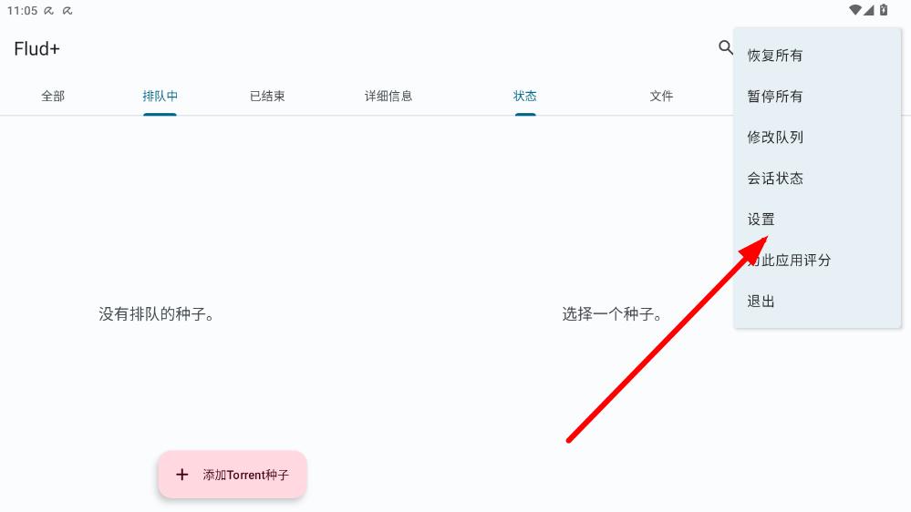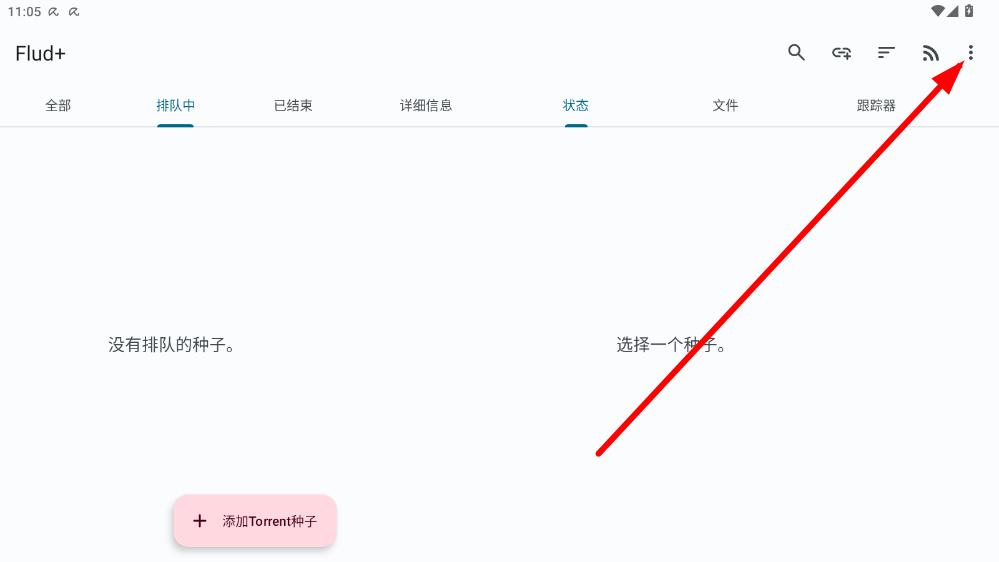 1、打開Flud+應(yīng)用,點擊界面右上角的三點菜單圖標(biāo)。