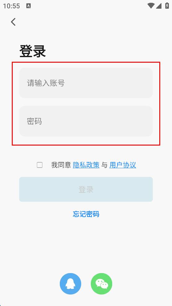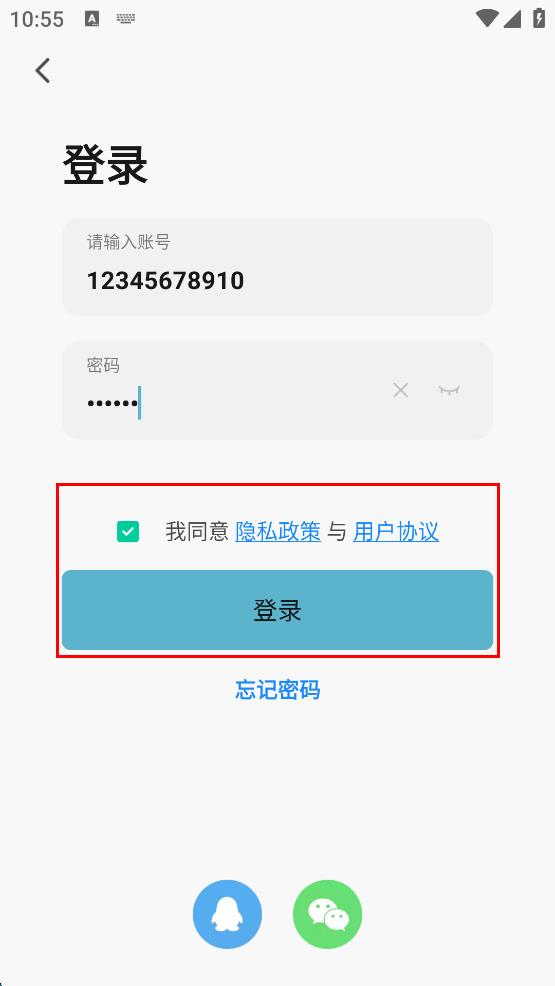 3、在登錄頁(yè)面輸入賬號(hào)和密碼,勾選我同意隱私政策與用戶(hù)協(xié)議。