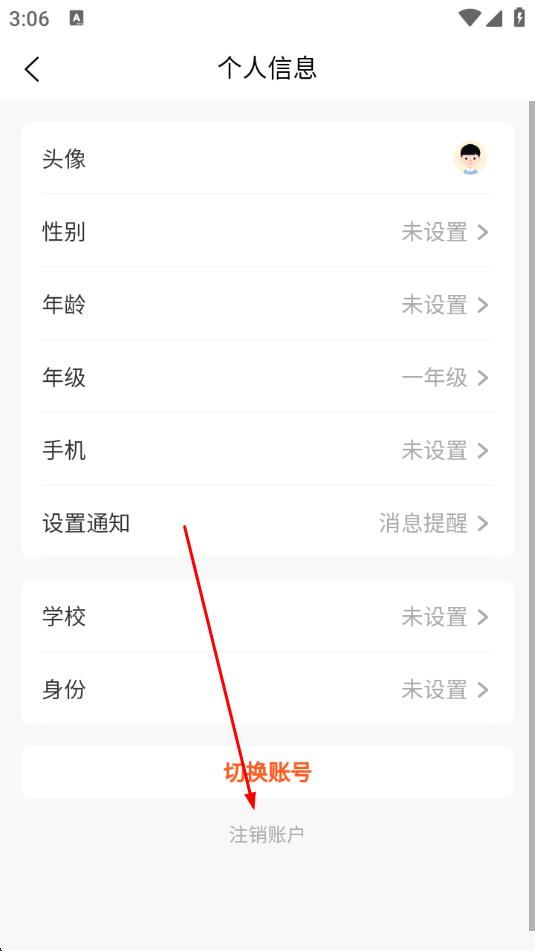3、在個人信息頁面,滑動到最下方,點擊注銷賬戶選項。