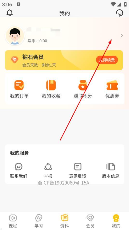 2、在“我的”頁面,點擊頭像右側(cè)的箭頭,進入個人信息頁面。