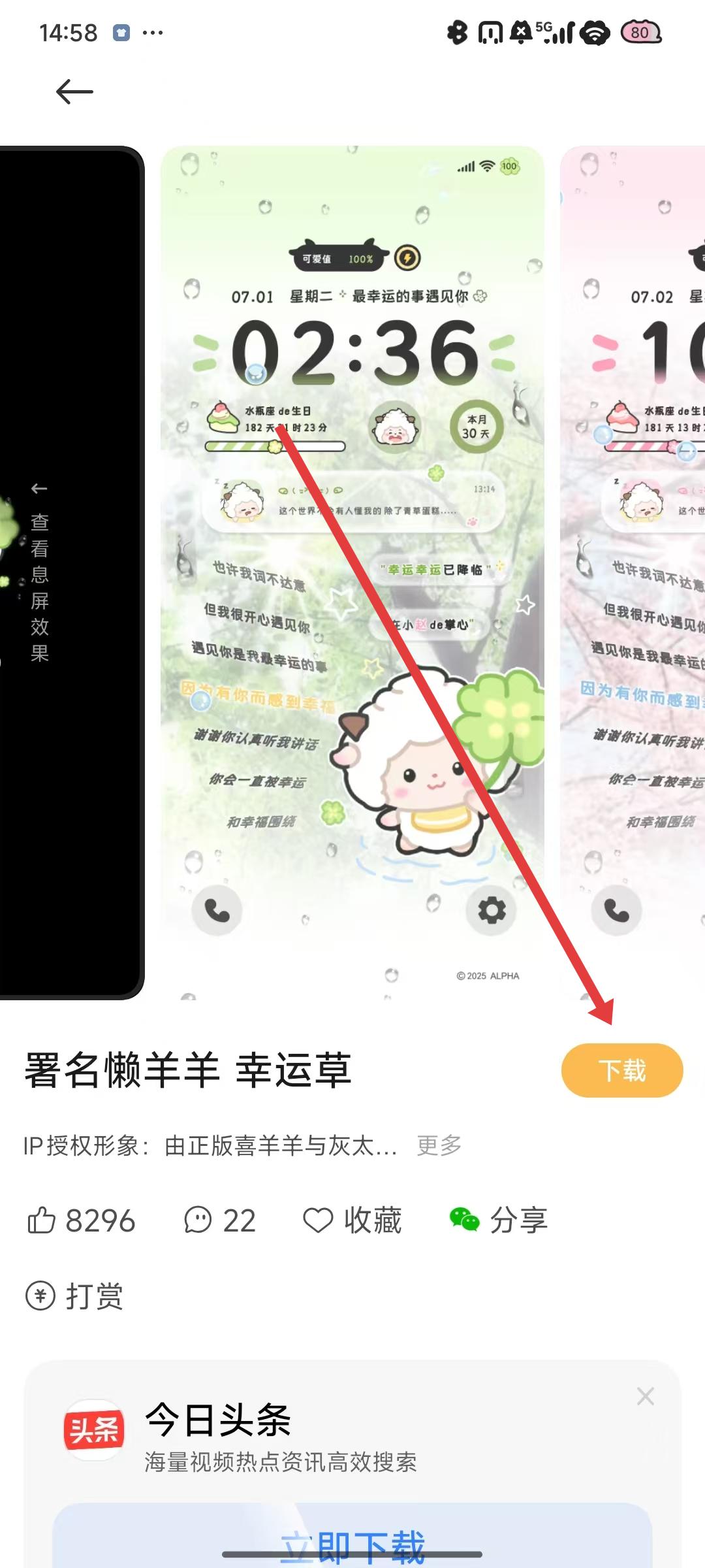 2、點擊進入心儀主題的詳情頁面,查看主題的具體樣式,確認喜歡后點擊頁面右下角的下載按鈕。