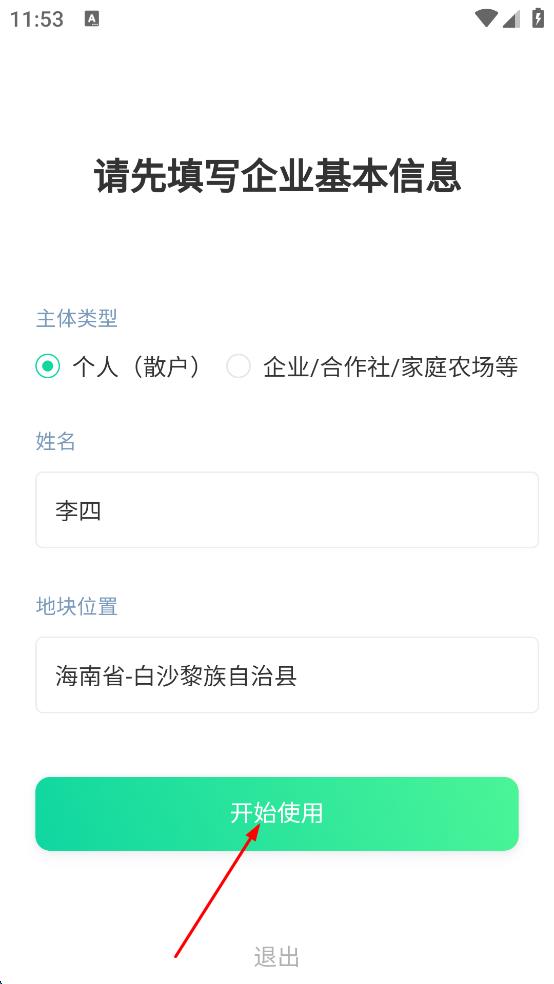 4、信息填寫完成后,點(diǎn)擊“開始使用”按鈕,即可進(jìn)入APP使用。