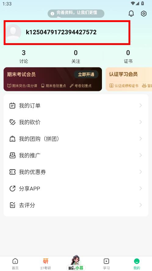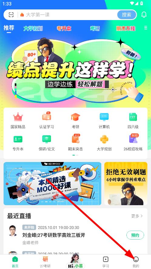 1、打開中國大學(xué)moocAPP,點(diǎn)擊首頁右下角我的進(jìn)入個(gè)人界面。