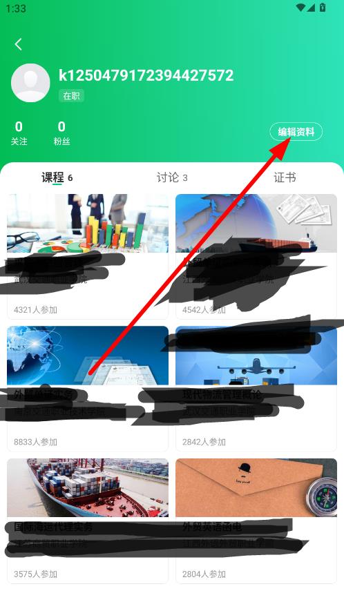 3、在個(gè)人資料頁面,點(diǎn)擊右上角編輯資料選項(xiàng),進(jìn)入資料設(shè)置界面。