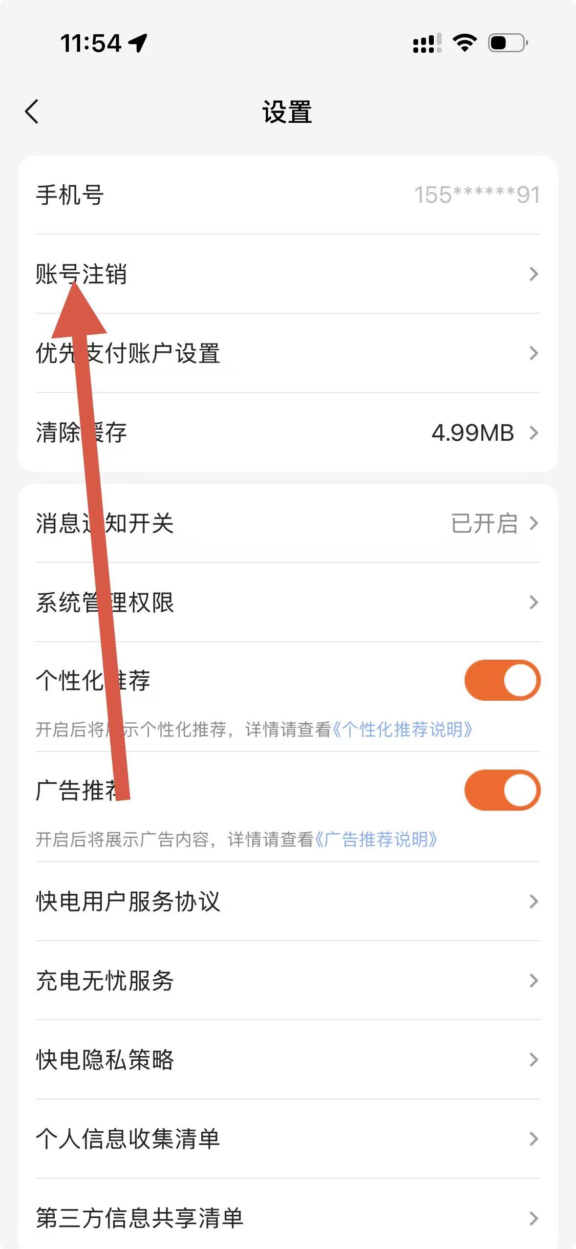 3、在設(shè)置界面里,點(diǎn)擊賬號注銷選項進(jìn)入賬號注銷頁面。