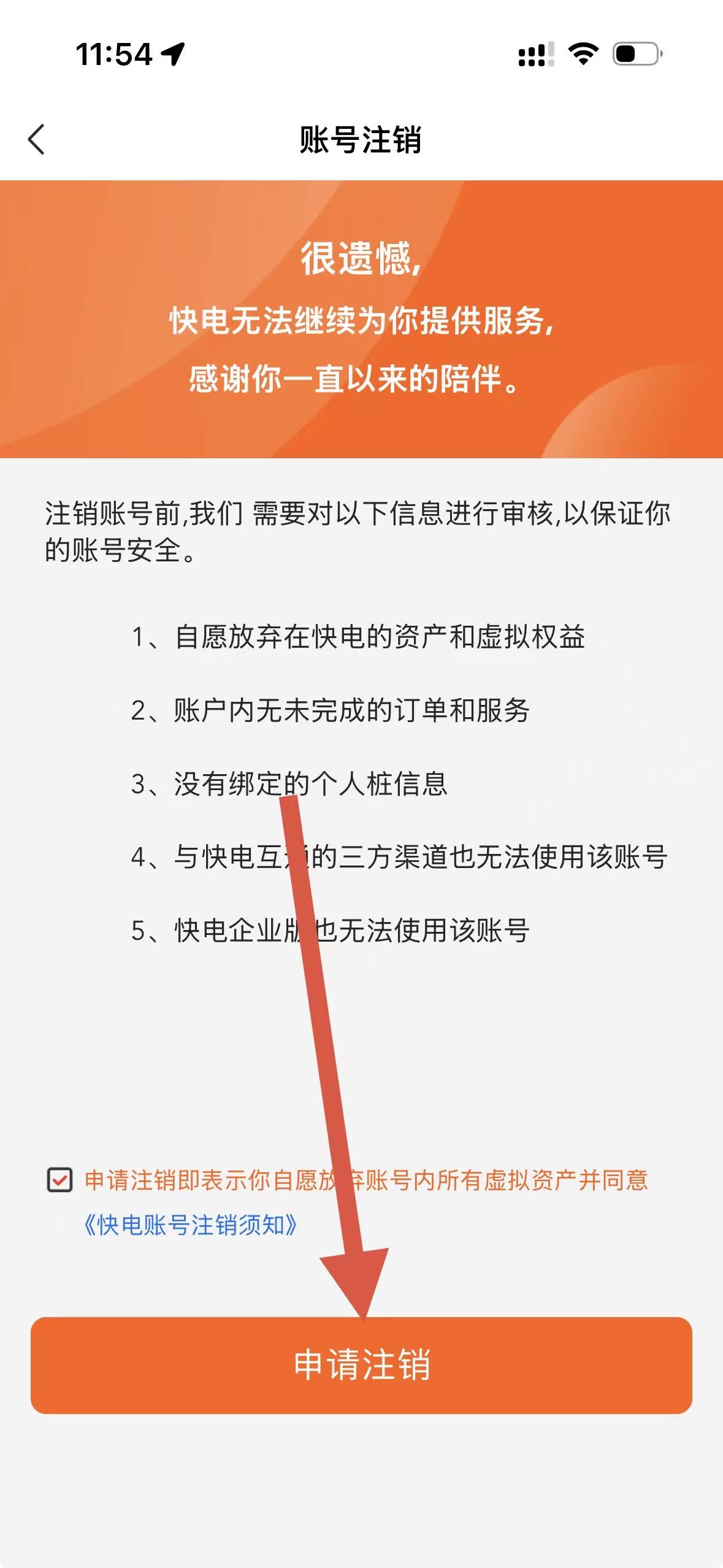 4、在賬號注銷頁面,勾選同意協(xié)議并點(diǎn)擊申請注銷按鈕,完成賬號注銷操作。