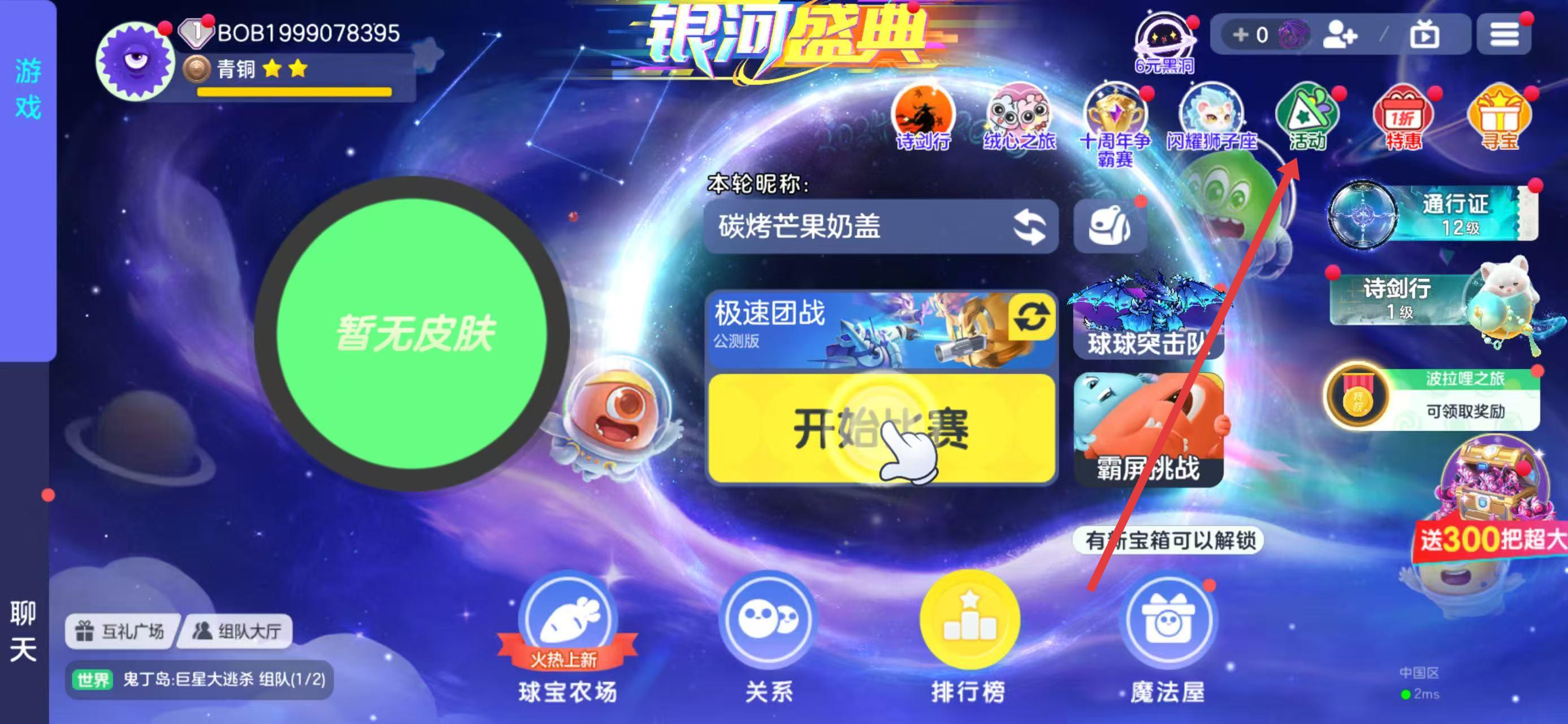 1、進入球球大作戰(zhàn)主界面,點擊右上方的活動圖標(biāo),進入活動頁面,這里集合了游戲當(dāng)前正在進行的各類活動。