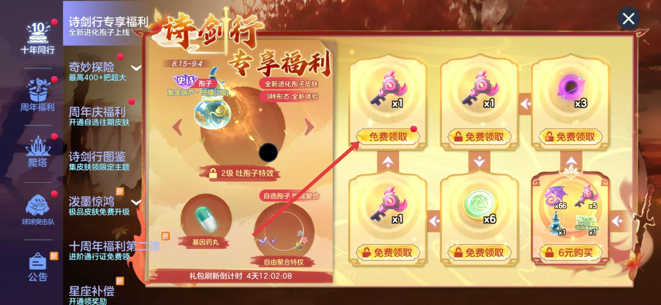 2、在活動頁面中,找到并點擊如詩劍行專享福利這類帶有福利領(lǐng)取性質(zhì)的活動選項。進入活動詳情界面后,查看可領(lǐng)取的禮包內(nèi)容,比如各種皮膚道具、鑰匙等。