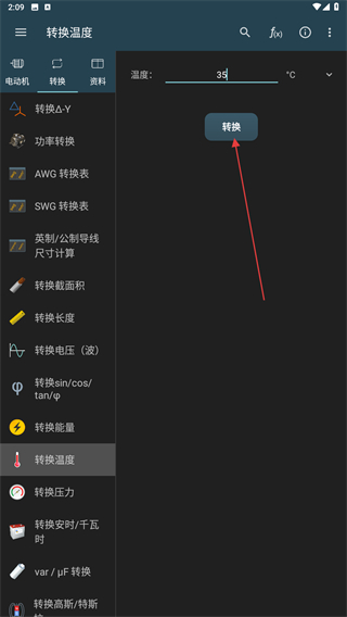 2、在轉(zhuǎn)換的頁面內(nèi),點擊轉(zhuǎn)換溫度的按鈕。