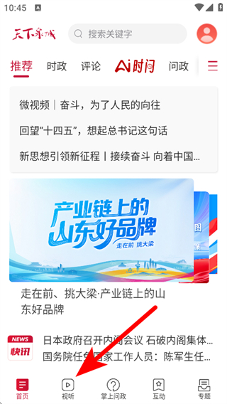 1、打開天下泉城app,點擊底部視聽的按鈕,進入視聽的頁面。