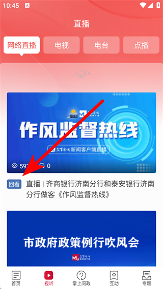2、在視聽頁面的直播板塊中,點擊帶有回看標識的直播內(nèi)容。