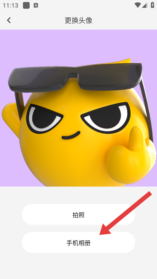 2、在更換頭像的頁面,點擊手機相冊的選項,進入手機相冊選擇圖片。