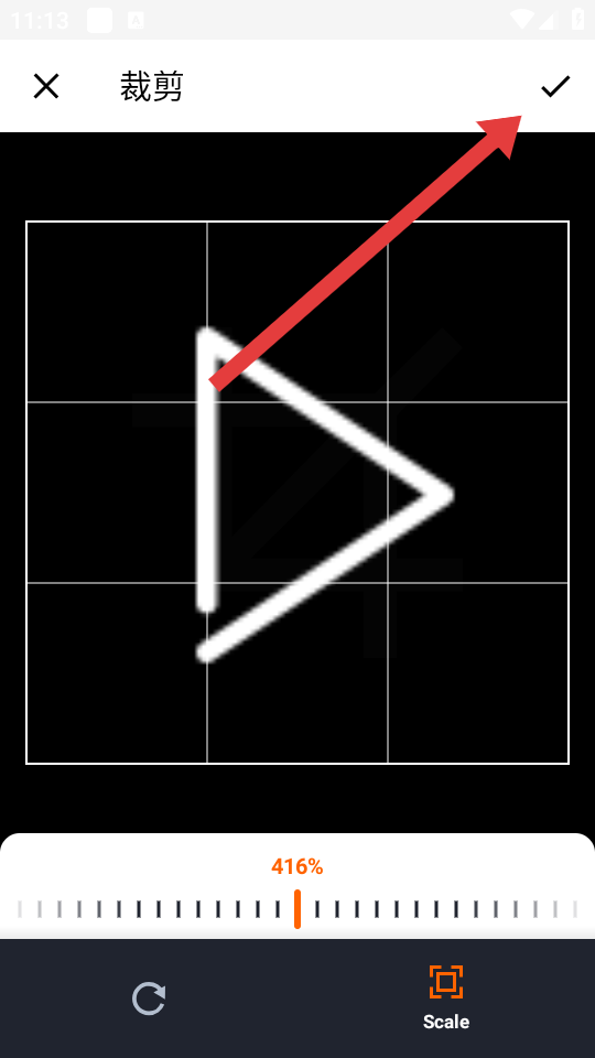 4、進入圖片裁剪頁面后,調(diào)整好頭像區(qū)域,點擊右上角的對勾圖標,即可完成頭像修改。