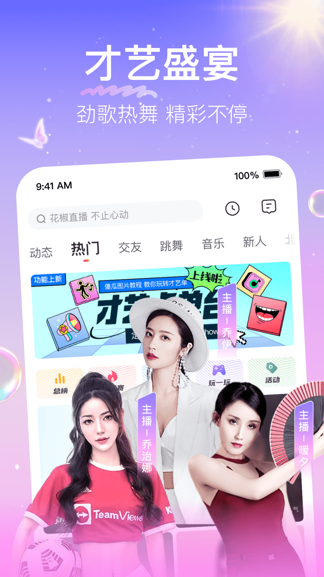 音樂直播、分享有禮,刷屏禮物,各種奇葩刺激的直播玩法等你來挖掘!