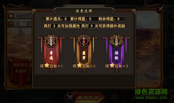 闖關(guān)會有難度的選擇,這個要根據(jù)自身英雄屬性來選擇啦,選擇“噩夢”難度一般穩(wěn)穩(wěn)妥妥的,會獲得2倍的勛章獎勵。如果喜歡挑戰(zhàn)自我的玩家也可以大膽選擇可以得到3倍獎勵的“煉獄”難度通關(guān)哈,問你敢不敢!