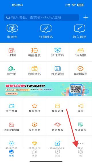 1、打開域名APP,在首頁內(nèi)點(diǎn)擊右下角我的圖標(biāo)。